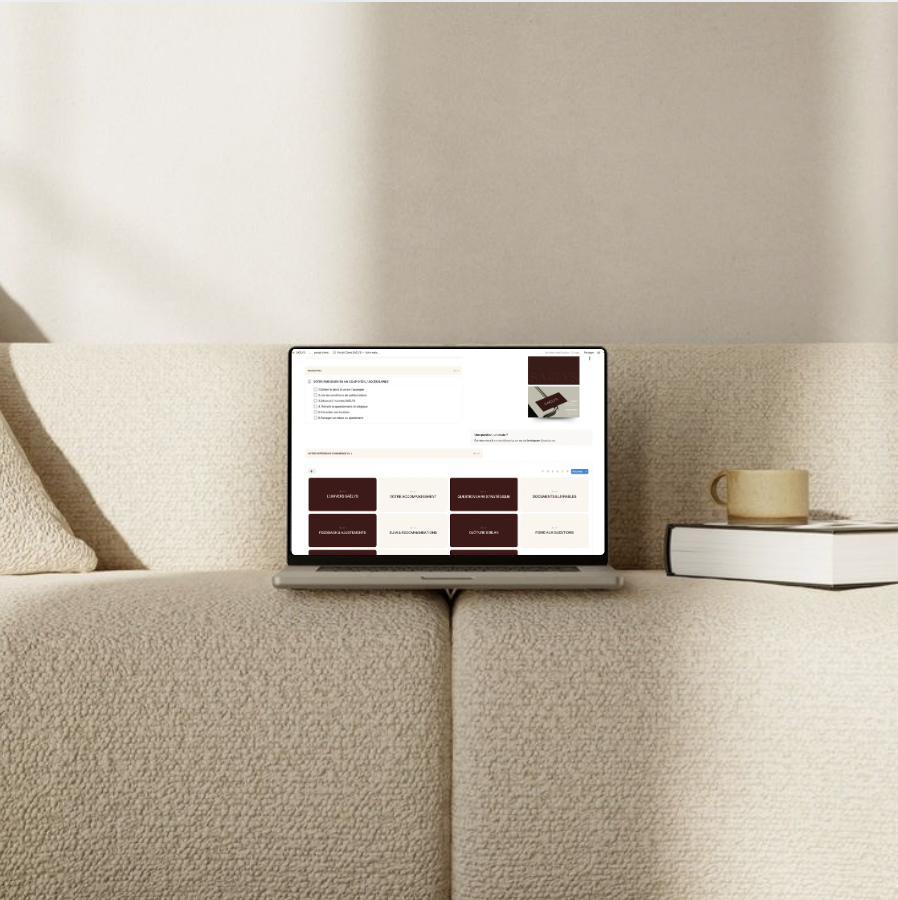 À la fin de l’accompagnement, vous recevez vos livrables finaux, accompagnés d’un mot de clôture personnalisé. Mais l’expérience SAĒLYS ne s’arrête pas là. Votre Maison Digitale reste accessible : vous conservez vos documents, vos recommandations et vos bilans stratégiques.